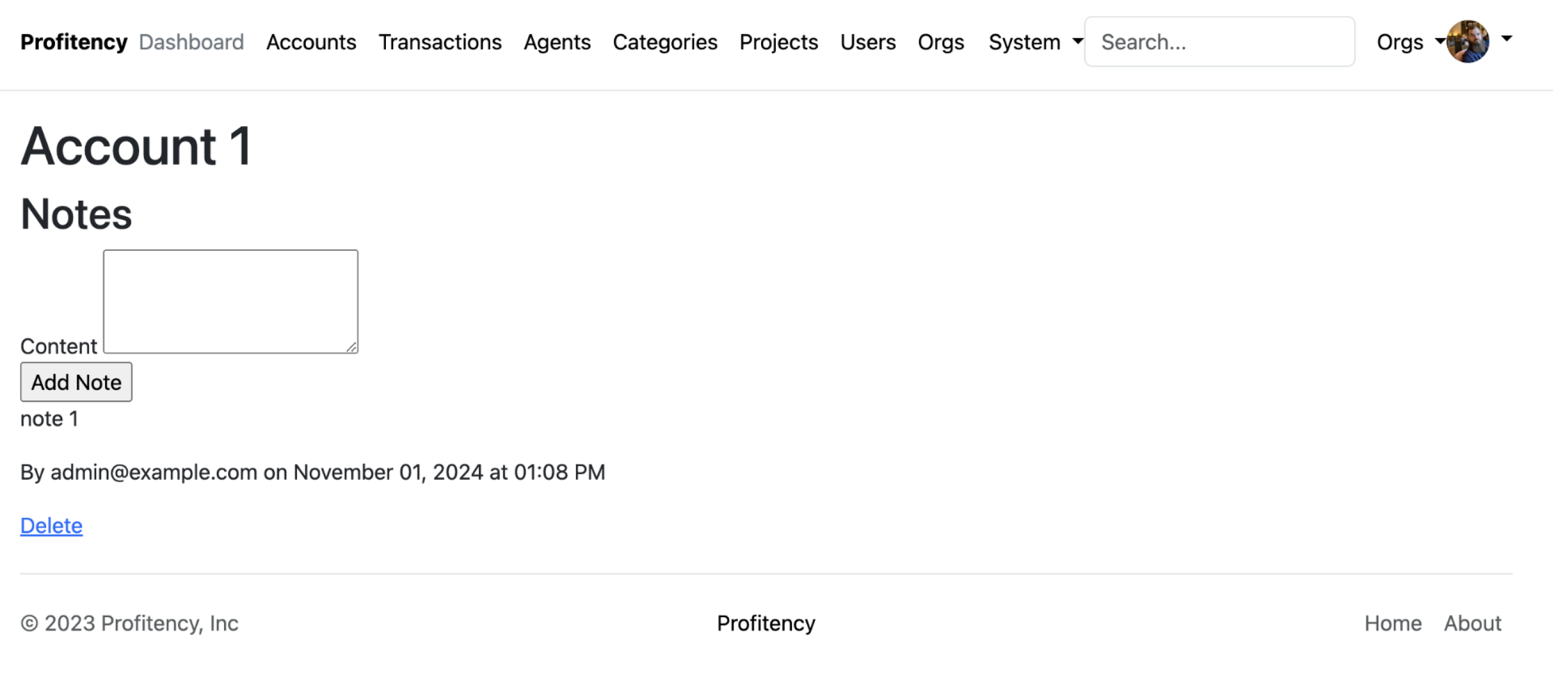 I asked Claude 3.5 Sonnet to add note-taking functionality for accounts. The suggested solution involved creating a separate table to store notes, including the user who wrote each note.